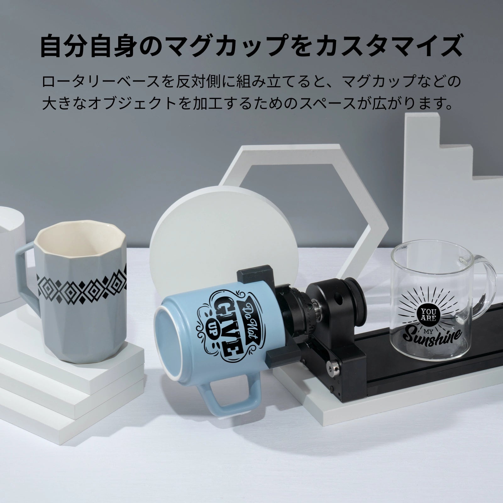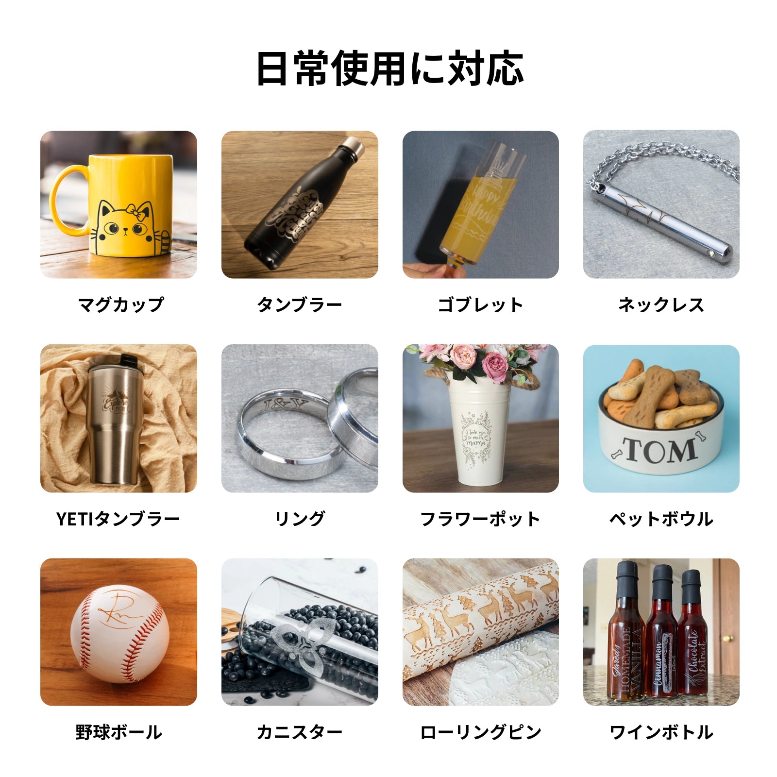 初見で使用した際にはソフトのパラメーター数値や外国のYoutubeの数値で試すと深く入りすぎたりと、色々と調整と経験が必要になりますが自分なりの数値が見つかると簡単になります。水平をしっかり出さないと歪んだりするのでグラスやタンブラーへの使用を考えると『xTool RA2 Pro S1/P2/F1専用 プラス』を購入したほうが良かったと思っています。