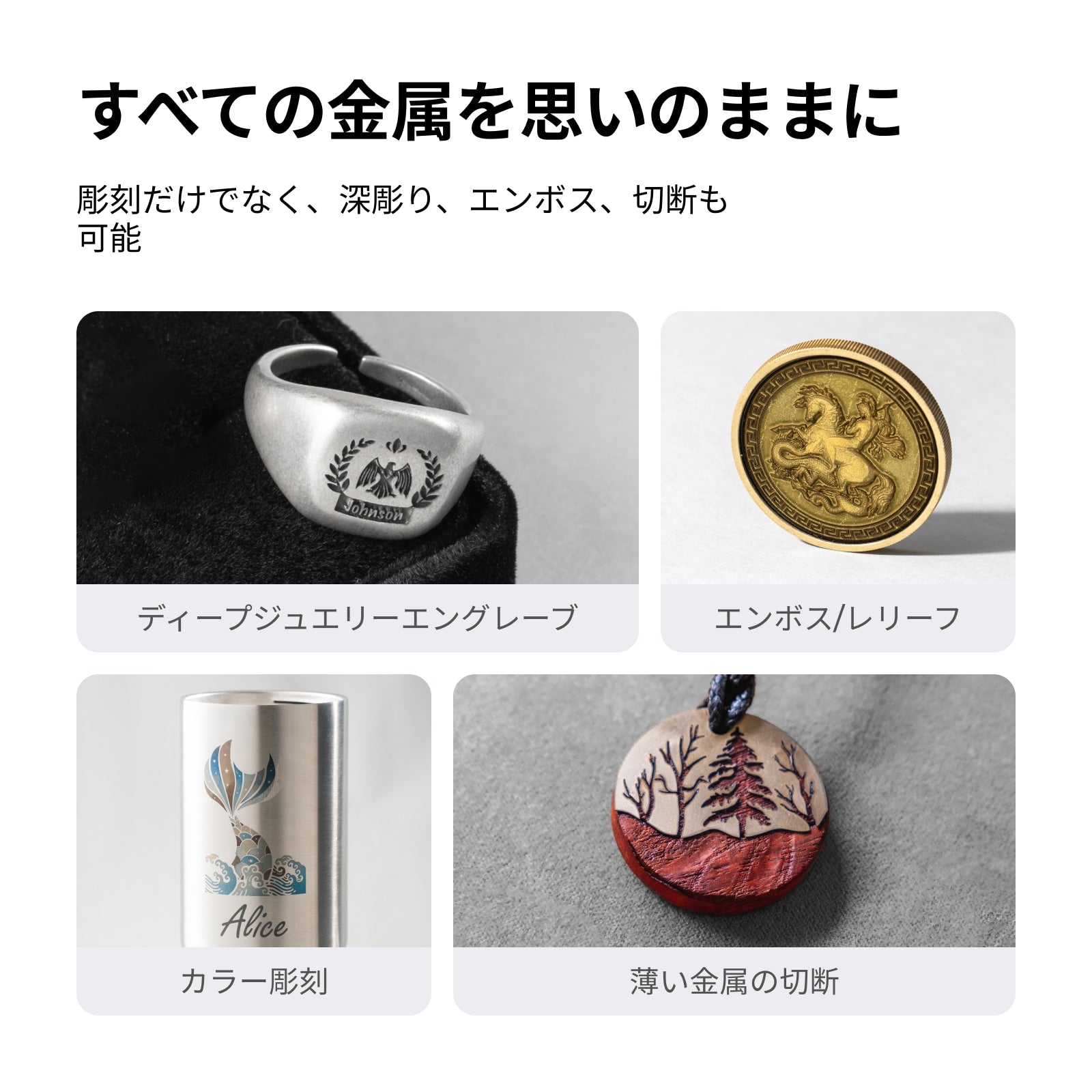 多用途のジュエリー製作: F1 Ultraは20Wのファイバーレーサーを持ち、金属に深い彫刻、エンボス加工、薄い