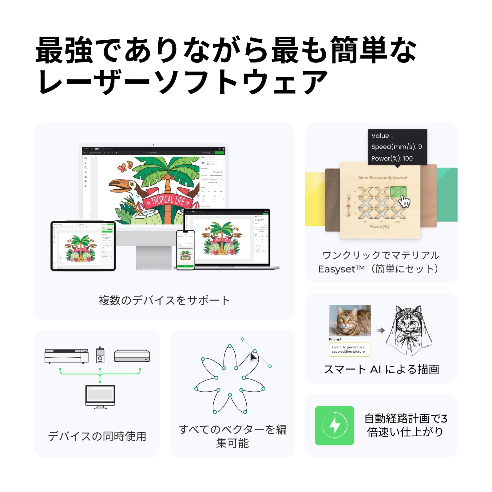 のに便利です。2Wの赤外線レーザーと10Wのダイオードレーザー、4000mm/sの速度で、ほぼ何にでも迅速に
