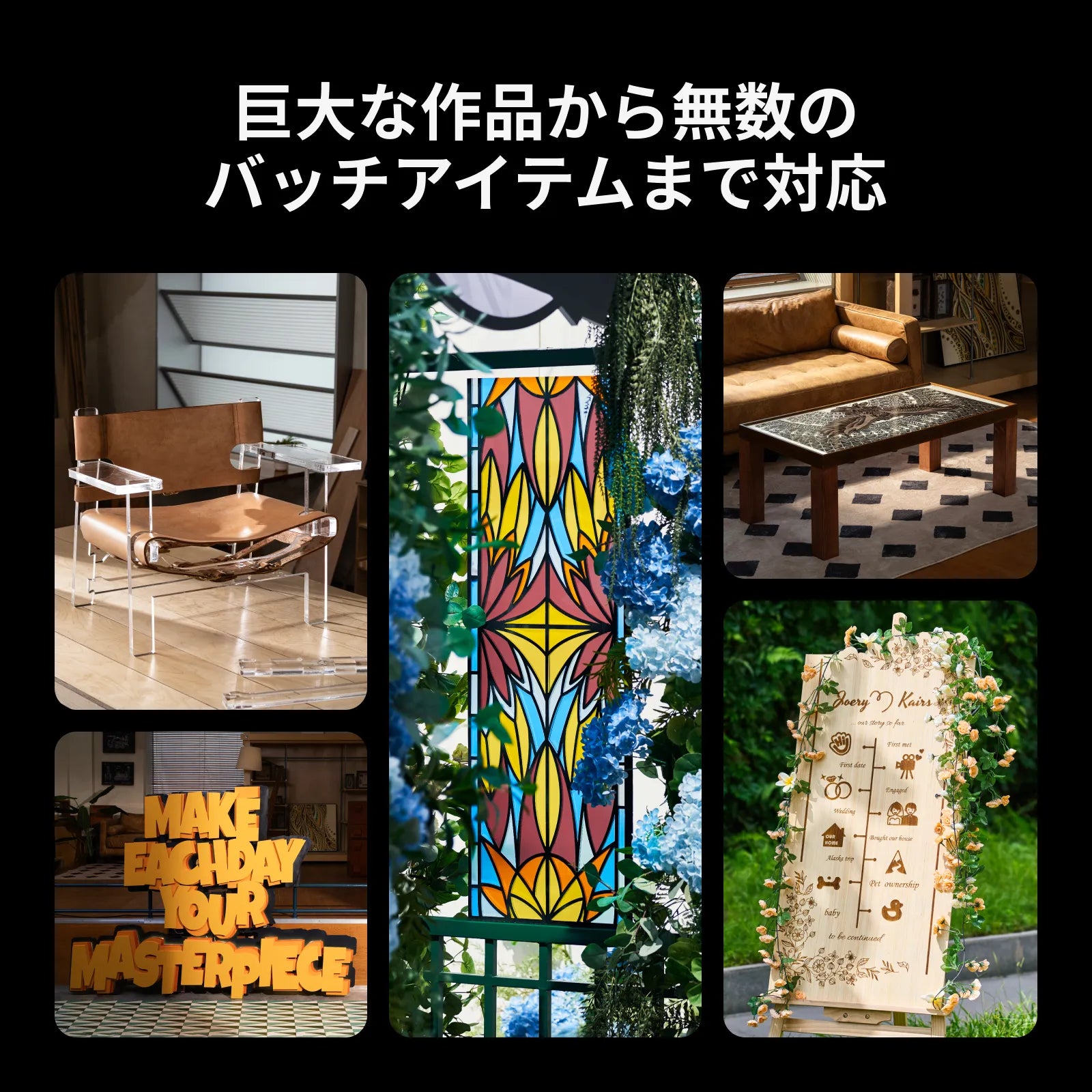 大規模なサインや家具の制作が非常に効率的になりました。インテリジェントフィーダーは面倒な手動設定や推測を排除します。正確なアライメントのためのシームレスなプレビューを提供し、オートクランプ、オートホーミング、オートプロセッシング機能を備えています。