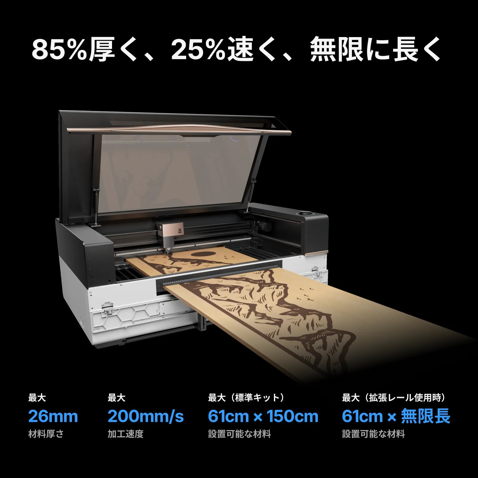 無限の長さを扱うために、より多くのレールを追加することで、創造的な可能性を広げます。これにより、家具要素のような大規模プロジェクトを作成したり、1回の連続バッチでより多くのアイテムを生産することができます。