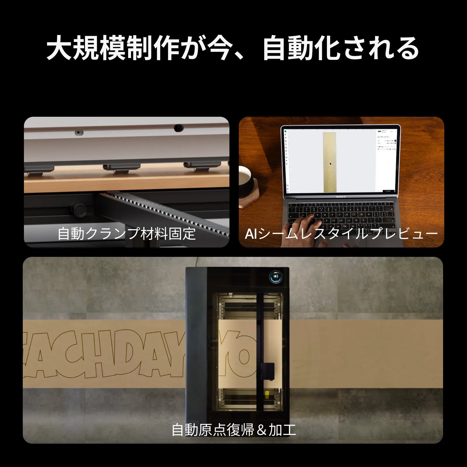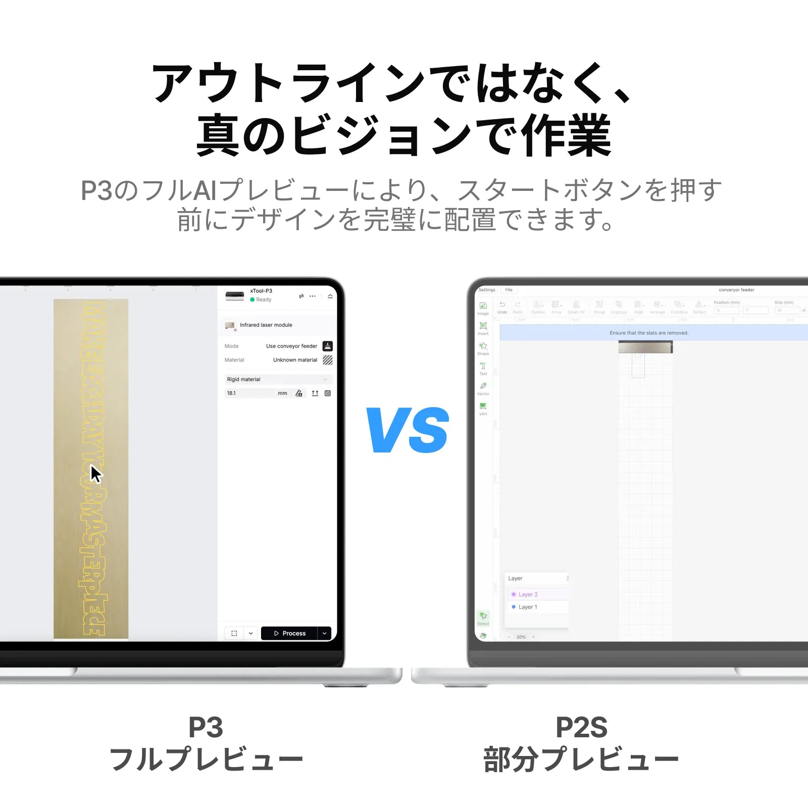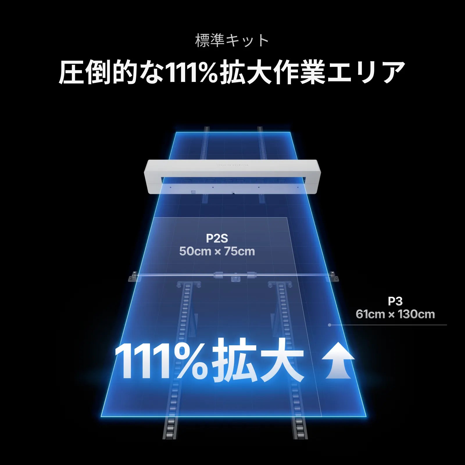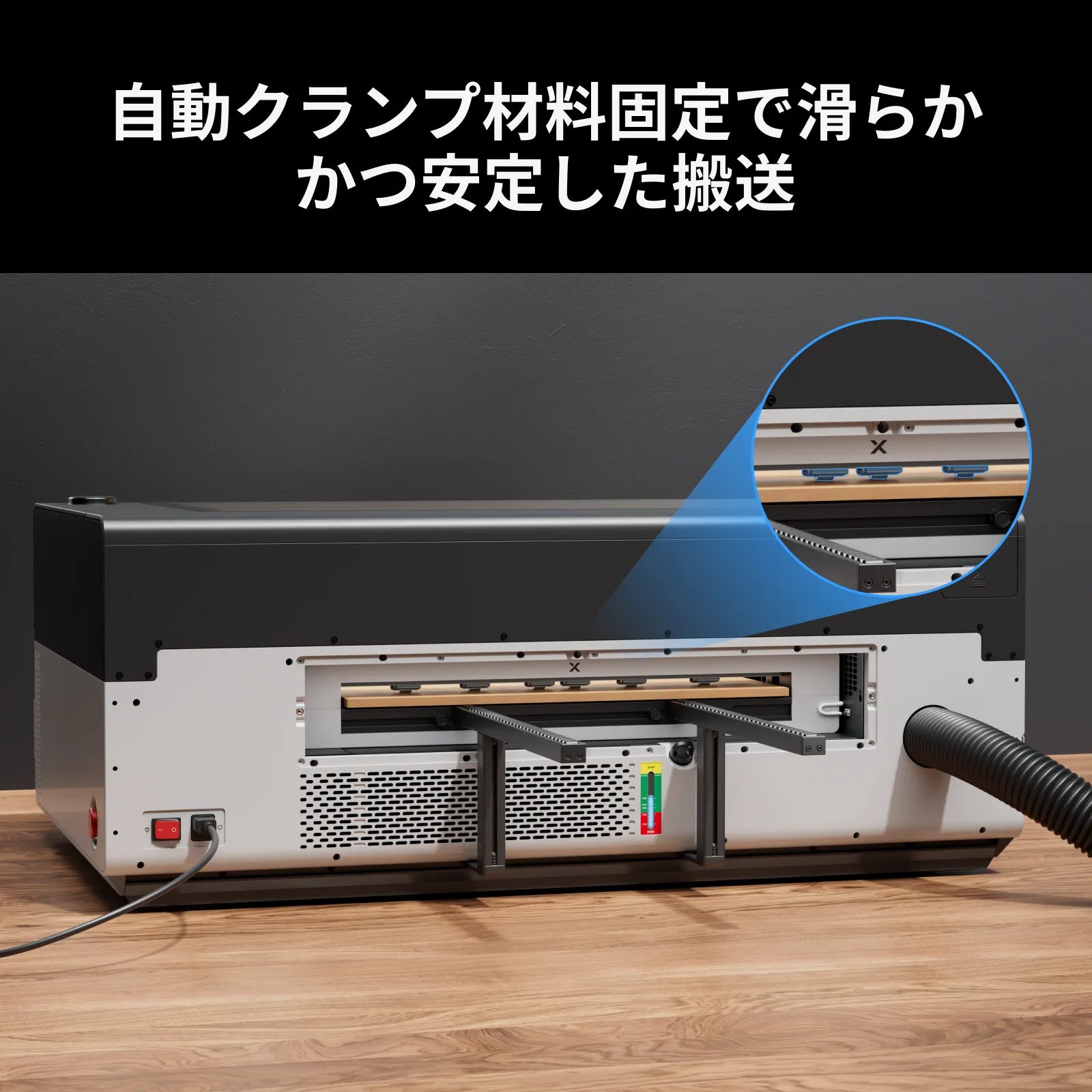 P3フィーダーの標準キットで、111%大きな処理エリアを解放します。これは、革命的な3軸(X+Y+U)制御と、より広いゼロエッジ廃棄デザインの組み合わせによって実現され、xTool P2Sの2倍以上の創造的なスペースを提供します。