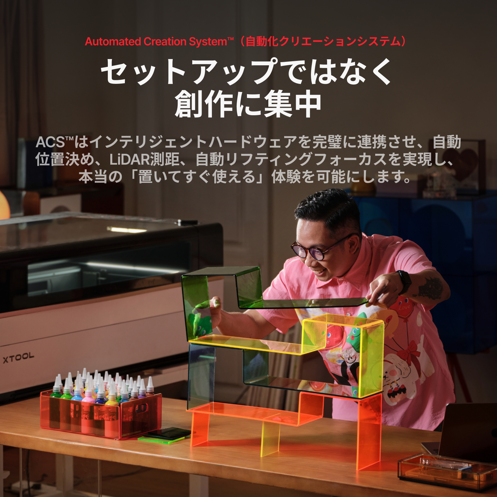 P3の革命的なACS™(自動化創造システム™)ワークフローは、ユーザーを面倒な手動セットアップから完全に解放し、「材料を置いて進む」という究極の便利さを実現します。これは、技術が創造性に役立つようにし、妨げることなく、すべての創造が正確で完璧、シームレスであることを保証します。ハードウェアの相乗効果を達成するためのワークフロー