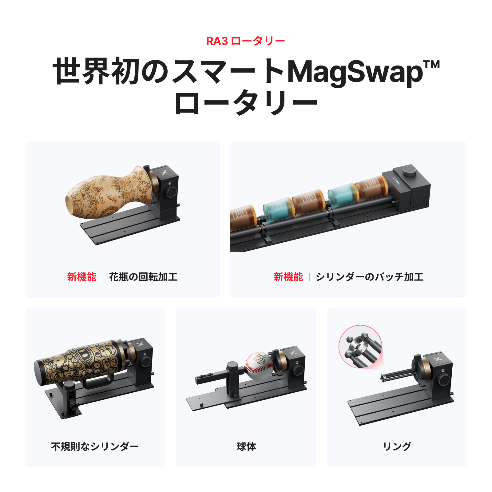 • 回転彫刻:これは最も重要なアップグレードの1つです。P3のスマートRA3回転アクセサリーは、360° LiDARマッピングを使用して彫刻前に完璧な3Dプレビューを作成し、バッチ処理をサポートします。P2Sの回転ツールは手動測定に依存し、プレビューは提供されず、単一アイテム処理に制限されています。