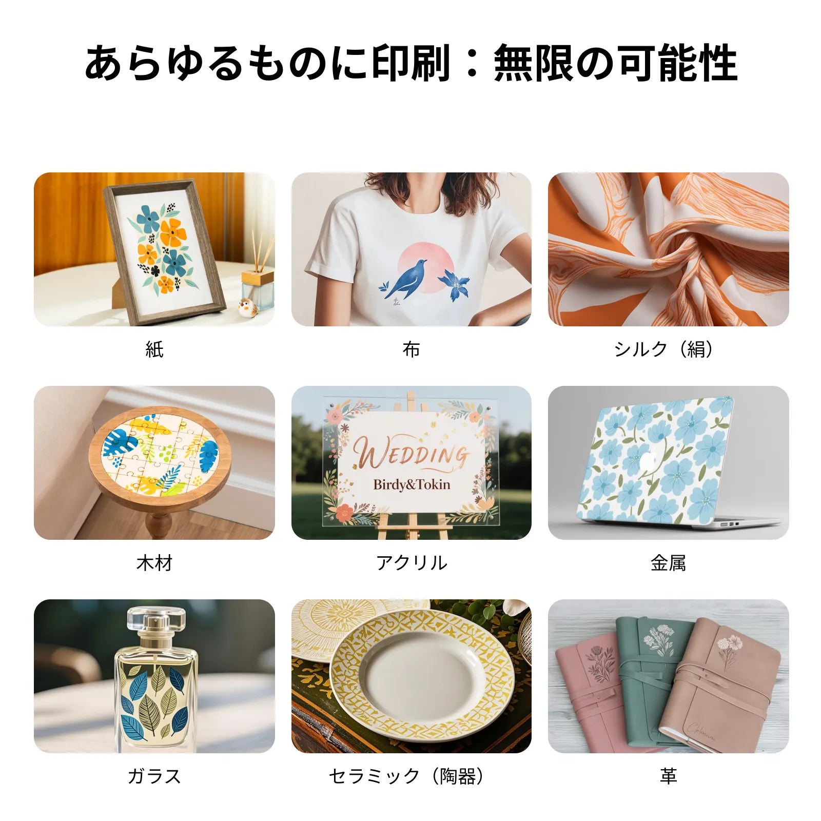 ソフトウェアが画像を自動で基本の印刷4色(シアン、マゼンタ、イエロー、ブラック)に分割。わずか4色であらゆるデザインを再現でき、写真のような複雑な印刷にも最適です。