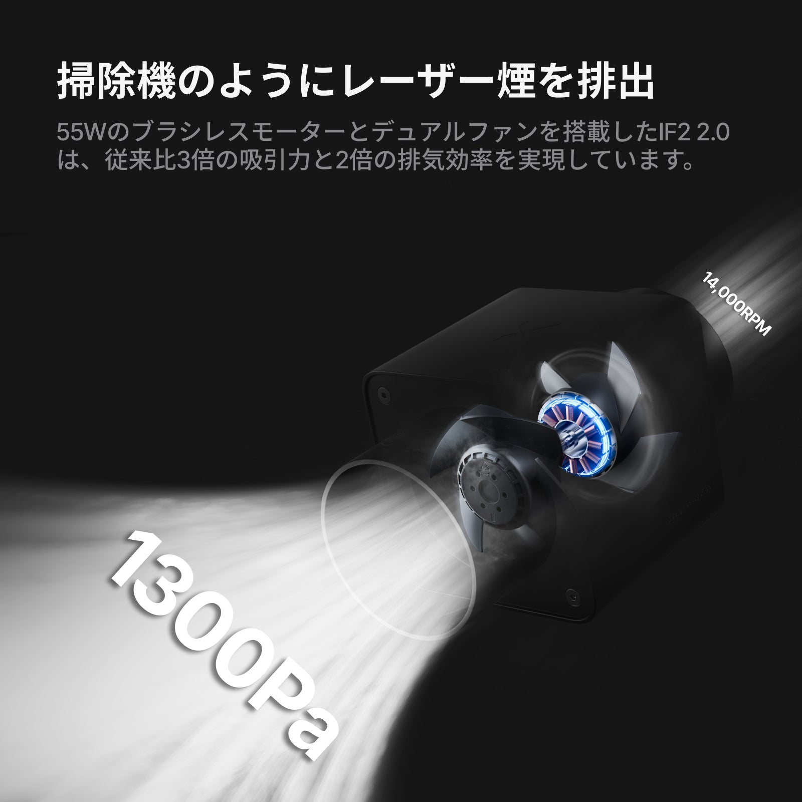 IF2 2.0ダクトファンの強力な吸引と高速により、煙を迅速に排出し、残留物や漏れを防ぎます。