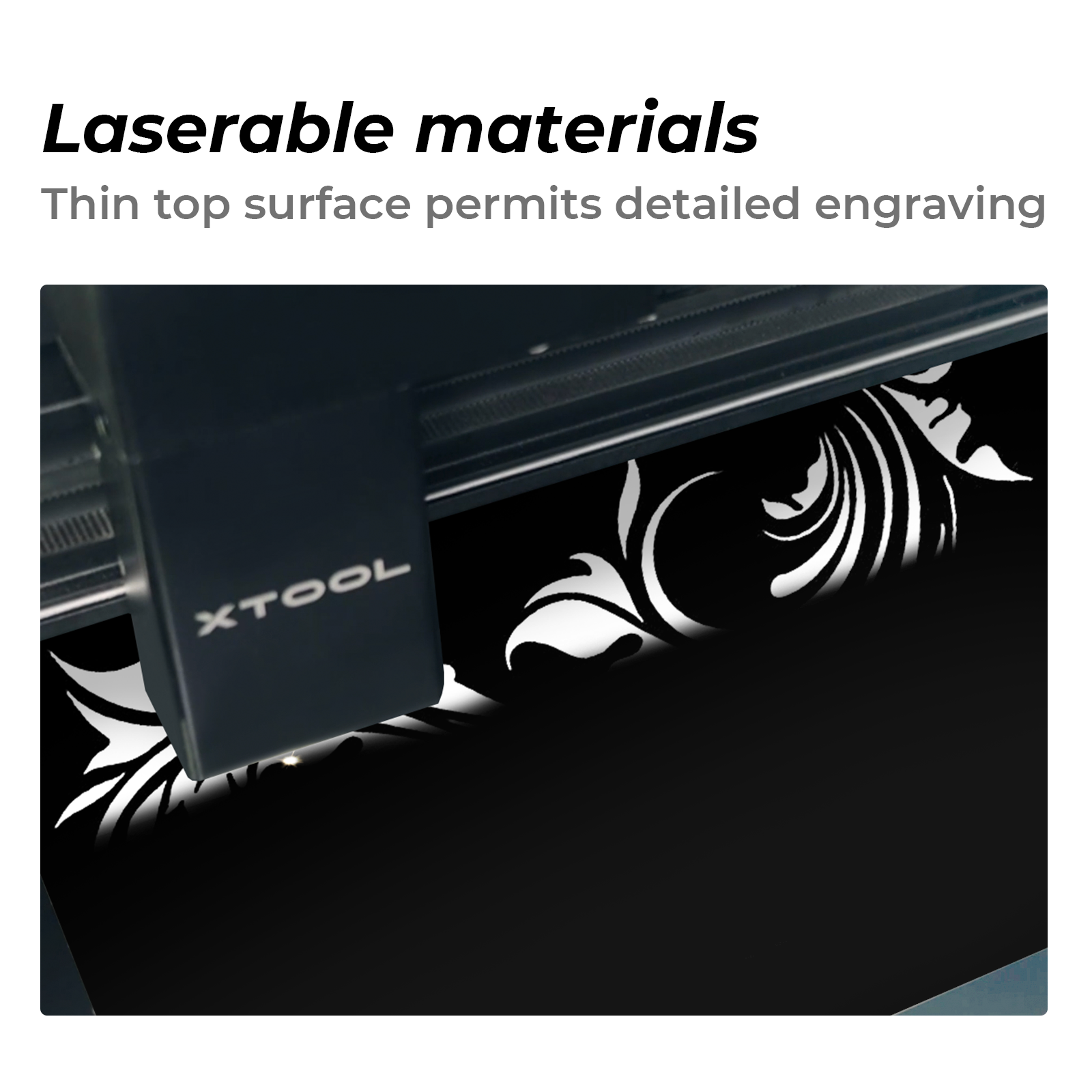 - 対応機種:レーザー彫刻用二層プラスチックシートは、xTool 5W~55W レーザー加工機での加工に適しており、すべてのxToolマシンで彫刻可能です。カット加工はLaserbox/P2のみで対応可能です。