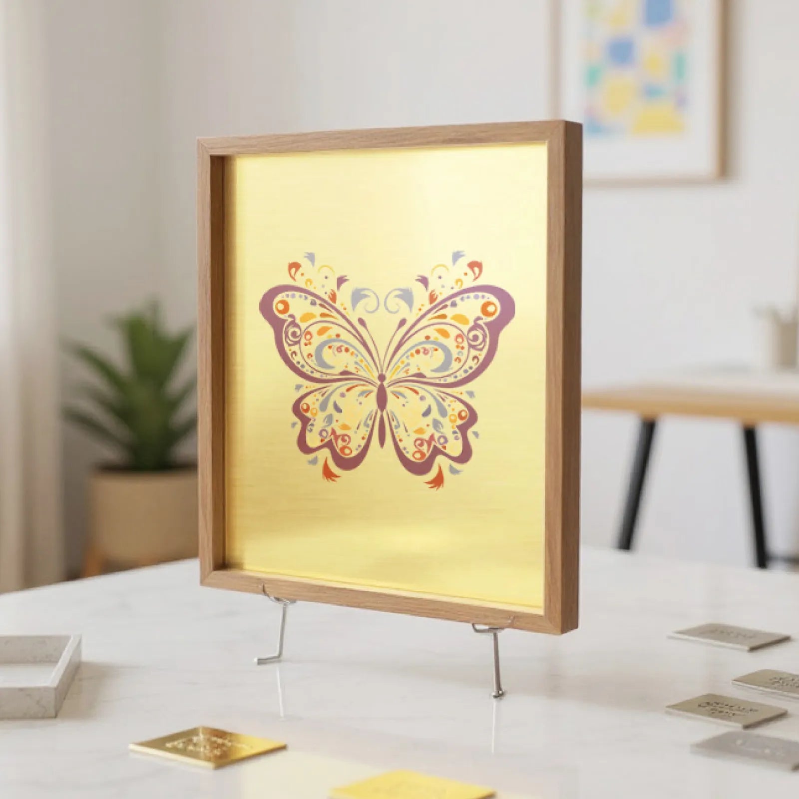 (※自動スキャン機能にはカメラが必要です。カメラ非搭載機種(F1/S/M1U/D)は、QRコードを手動でスキャンすることで迅速に最適な加工パラメータを取得できます。) - 真鍮シートは両面ラミネート加工されており、真鍮表面を傷から保護します。また、表面の酸化も防ぎます。