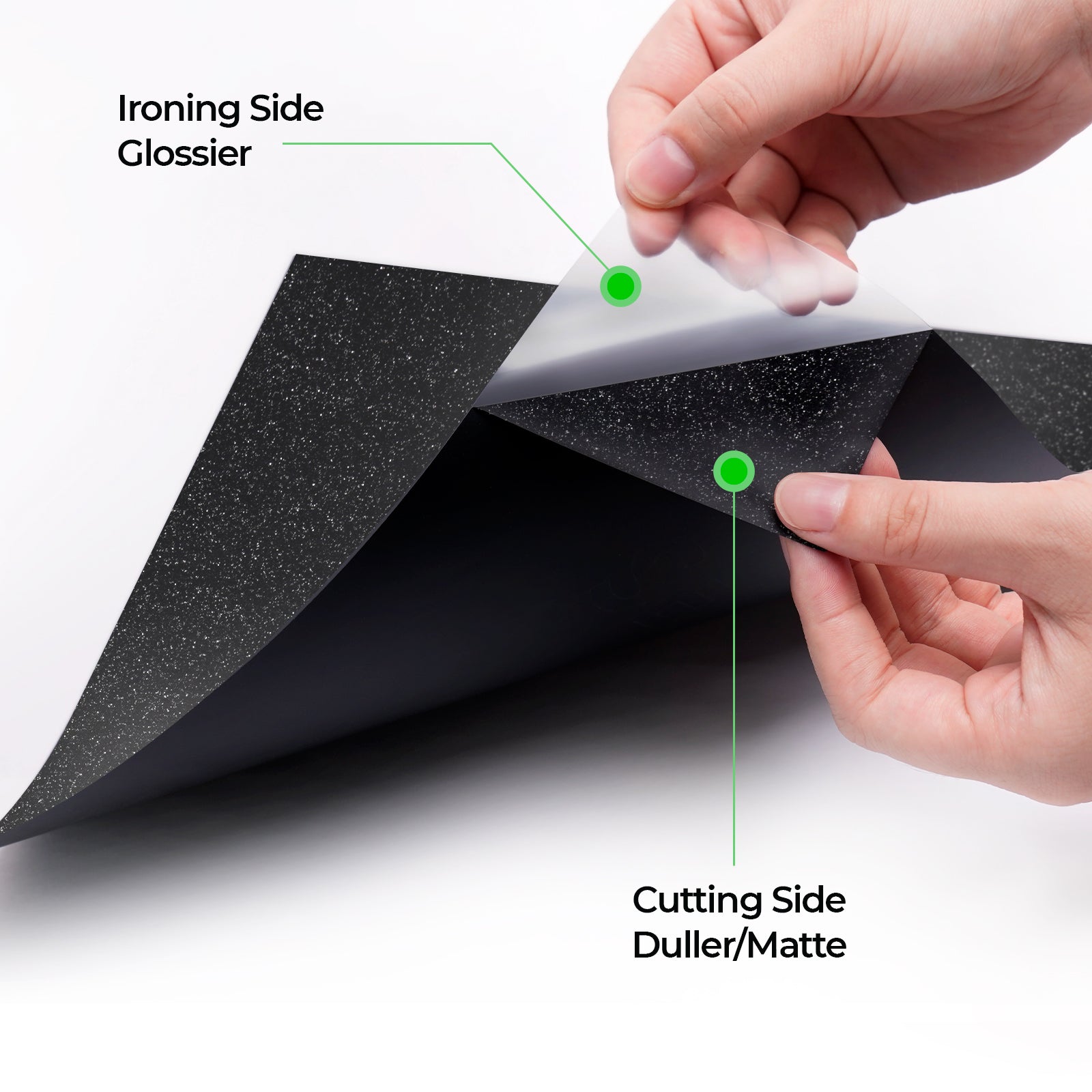 - 色: グリッター PET 熱転写ビニール、15 色。