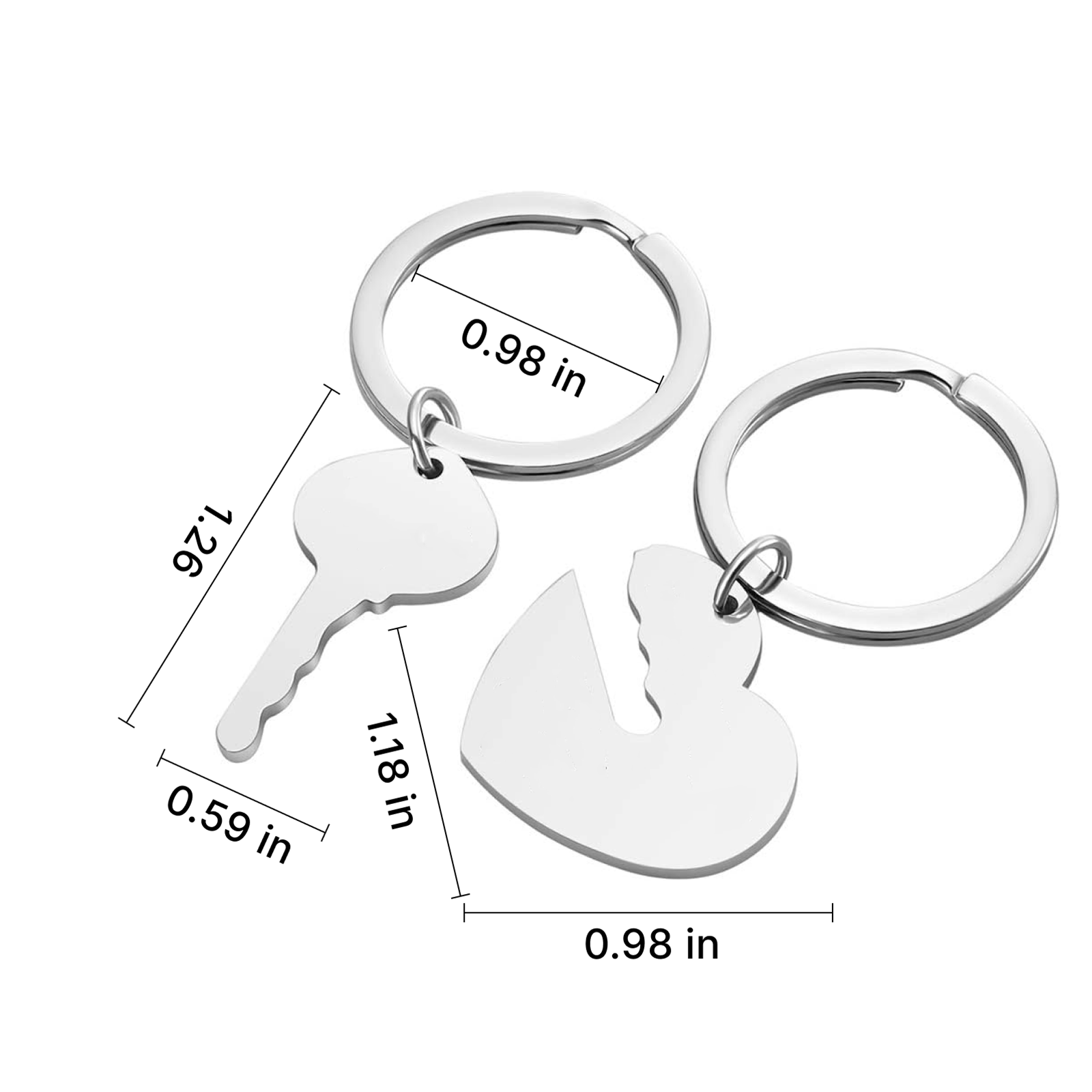 - ステンレススチール製のハート&キー キーチェーンセットは、ユニークなパズルデザインになっています。ハート型キーチェーンとキー型キーチェーンがセットになっており、ぴったりと組み合わさります。愛情や創造性を表現する素敵なギフトです。