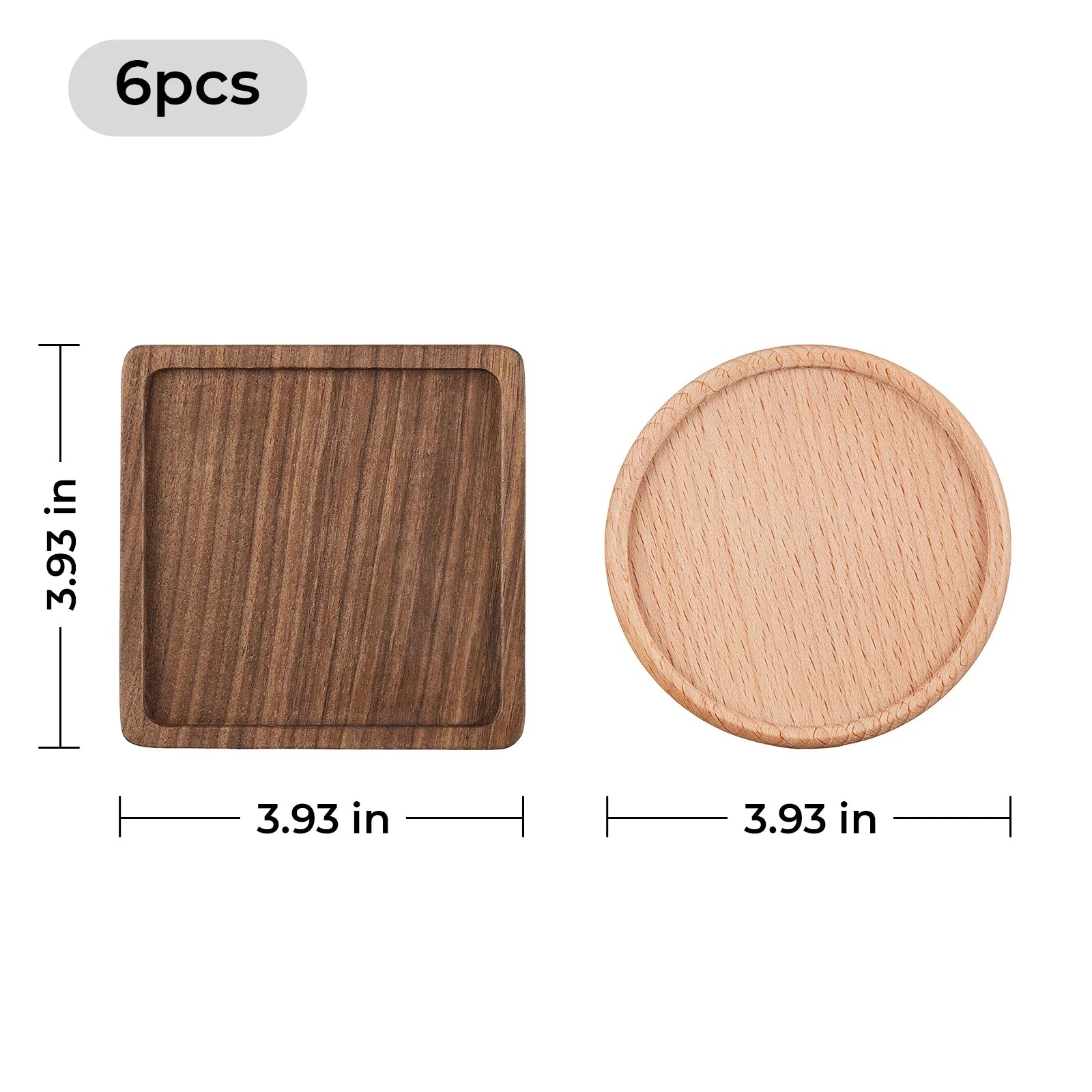 四角サイズ:10cm × 10cm - 同梱物ブナ材ラウンドコースター ×1