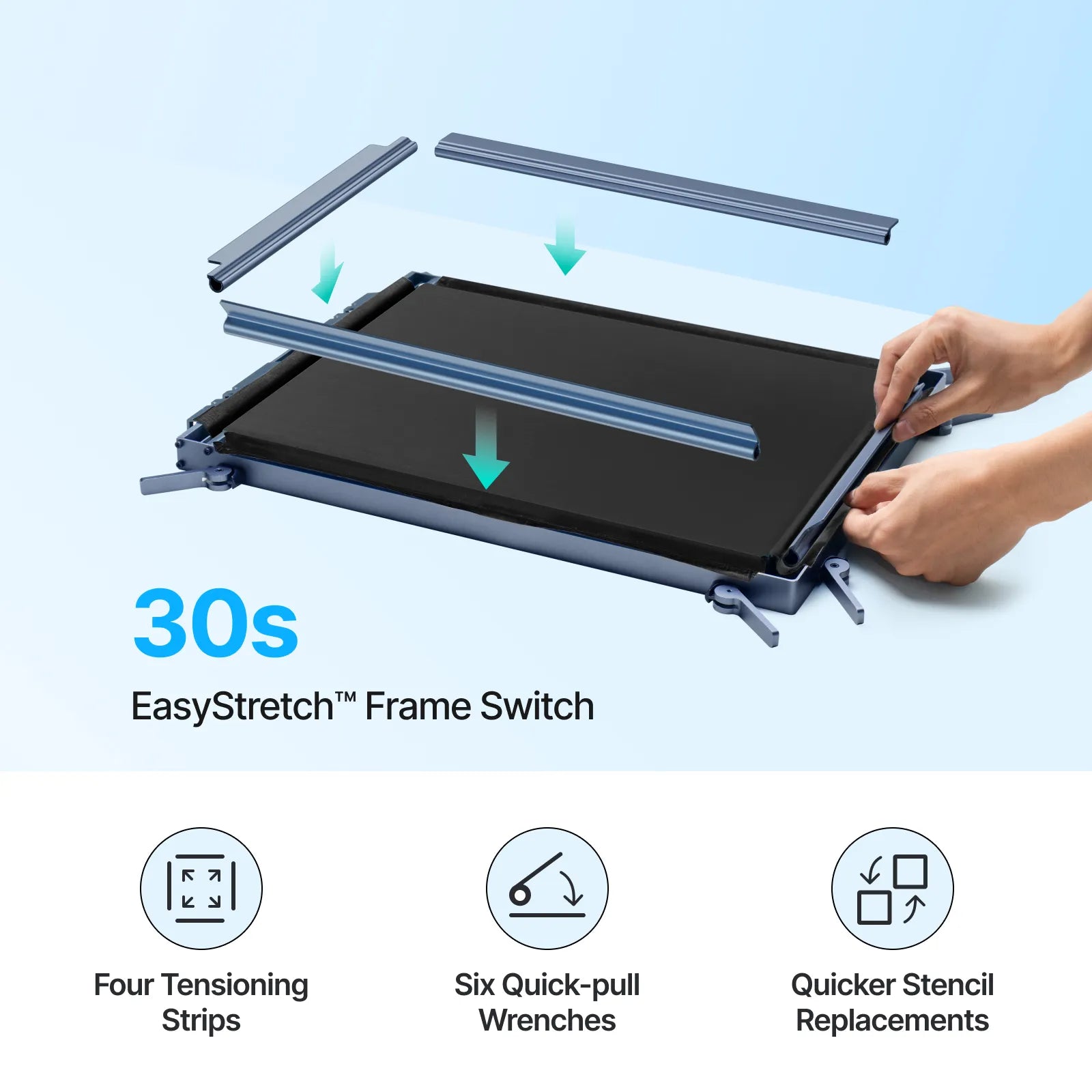 - ポリエステル高速彫刻スクリーンに対応。ポリエステル高速彫刻スクリーンでの多色印刷やマルチスクリーン加工に適しています。