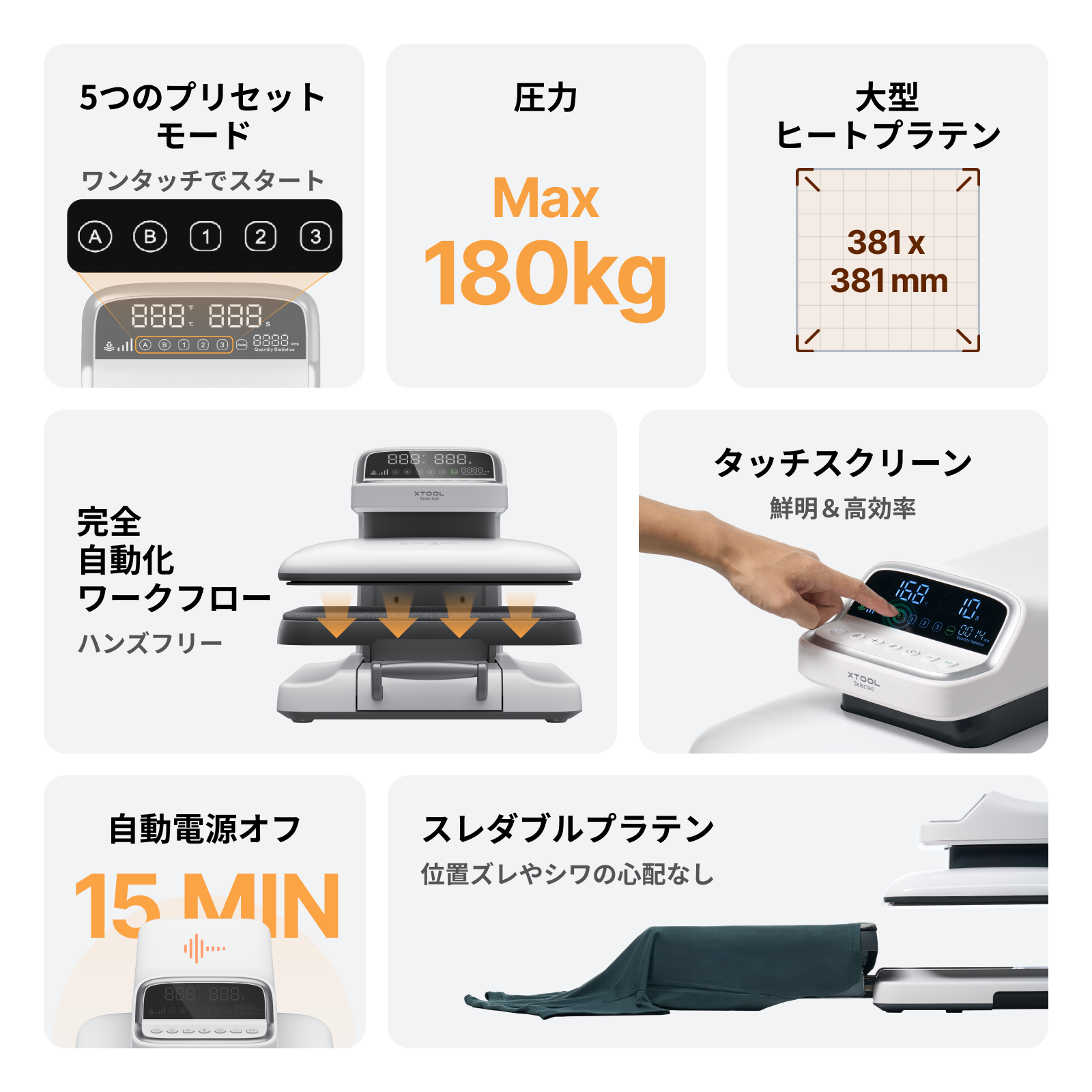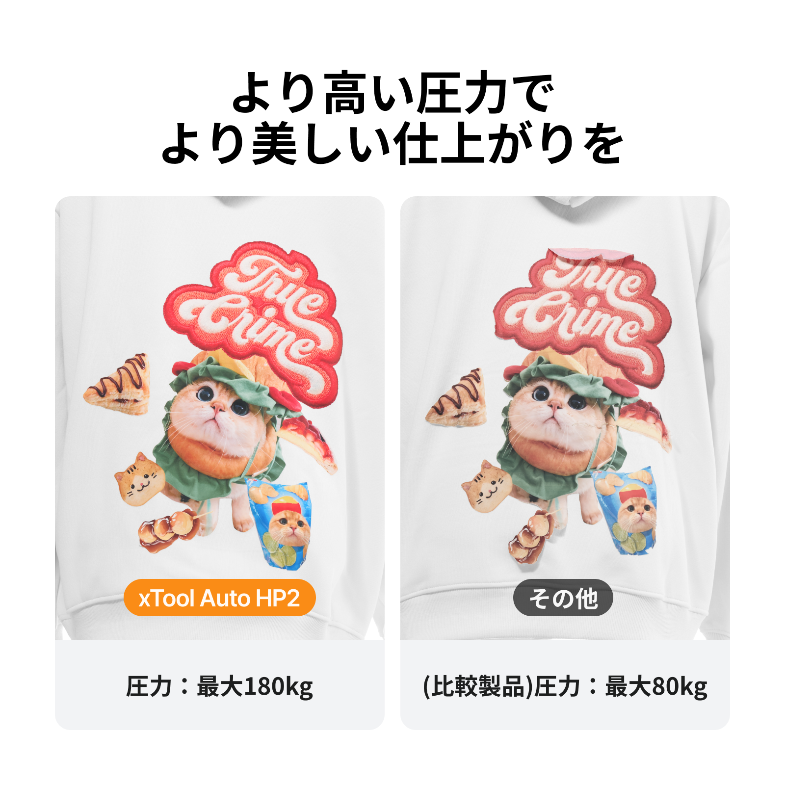 xTool厳選の素材とヒートプレス機で、プロ品質の転写を実現。
