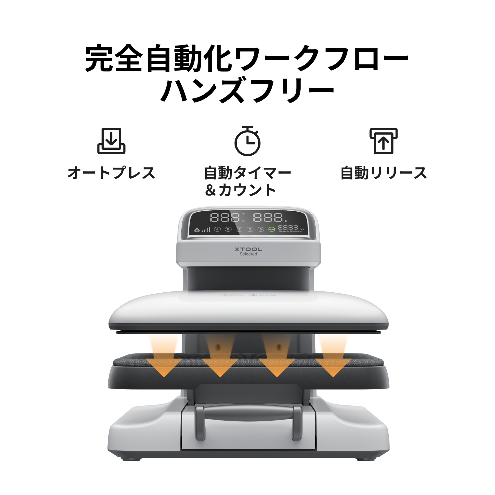 プレス、タイマー、カウント、圧着解除まで全自動。手間のかかる作業から解放され、創作活動に没頭できます。