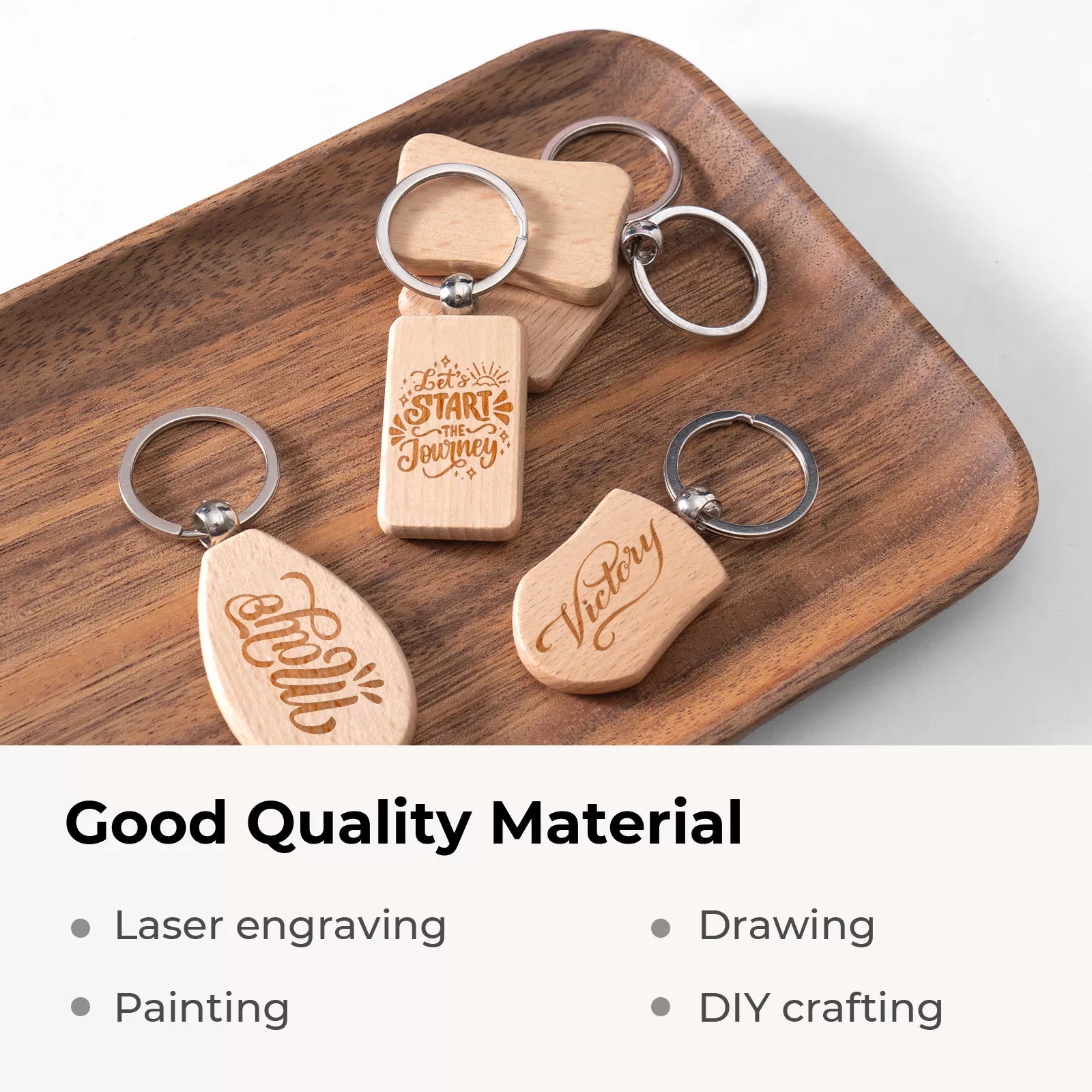 - 複数のオプション:ミックス形状の木製キーチェーンは合計10個入りで、使いやすく加工もしやすい製品です。さまざまなデザインニーズに対応できる多様なオプションを提供します。