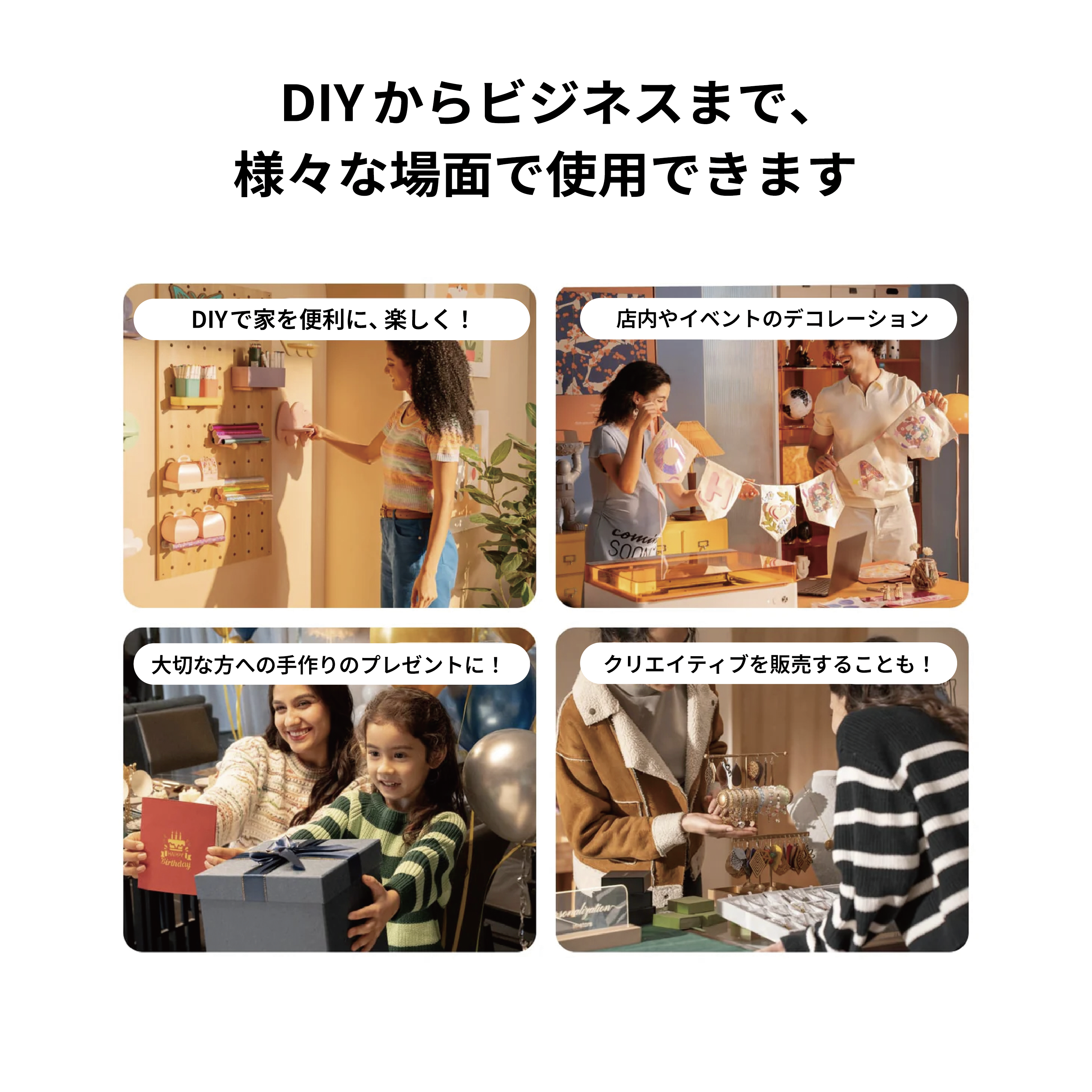私たちは多様なクリエイティブコミュニティを提供し、ホームデコレーション、ギフト制作、小規模ビジネス向けのプロジェクトファイルを豊富に取り揃えています。インスピレーションに困ることはありません!